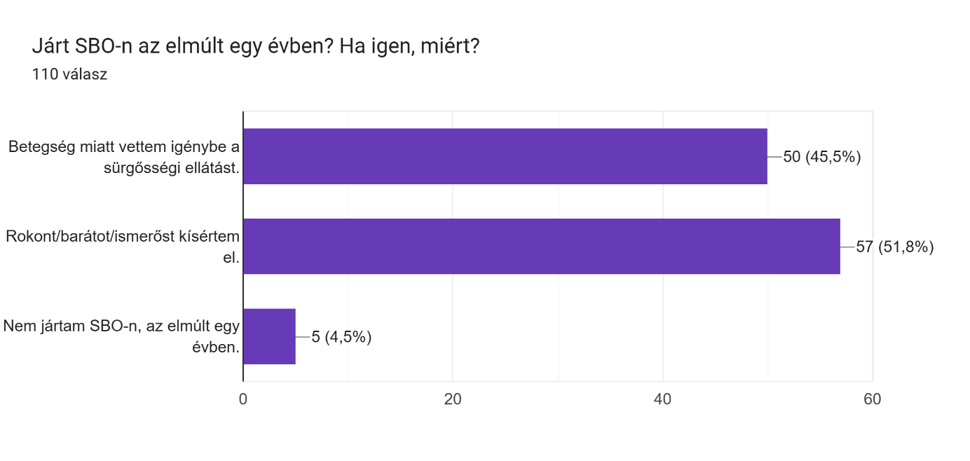 Az elmúlt időszakban sok visszajelzést kaptam a sürgősségi betegellátás működéséről. Ez ösztönzött arra, hogy egy gyors (100 fős) tájékozódó online felmérést végezzek, aminek az eredményeit az alábbi grafikonok mutatják be.